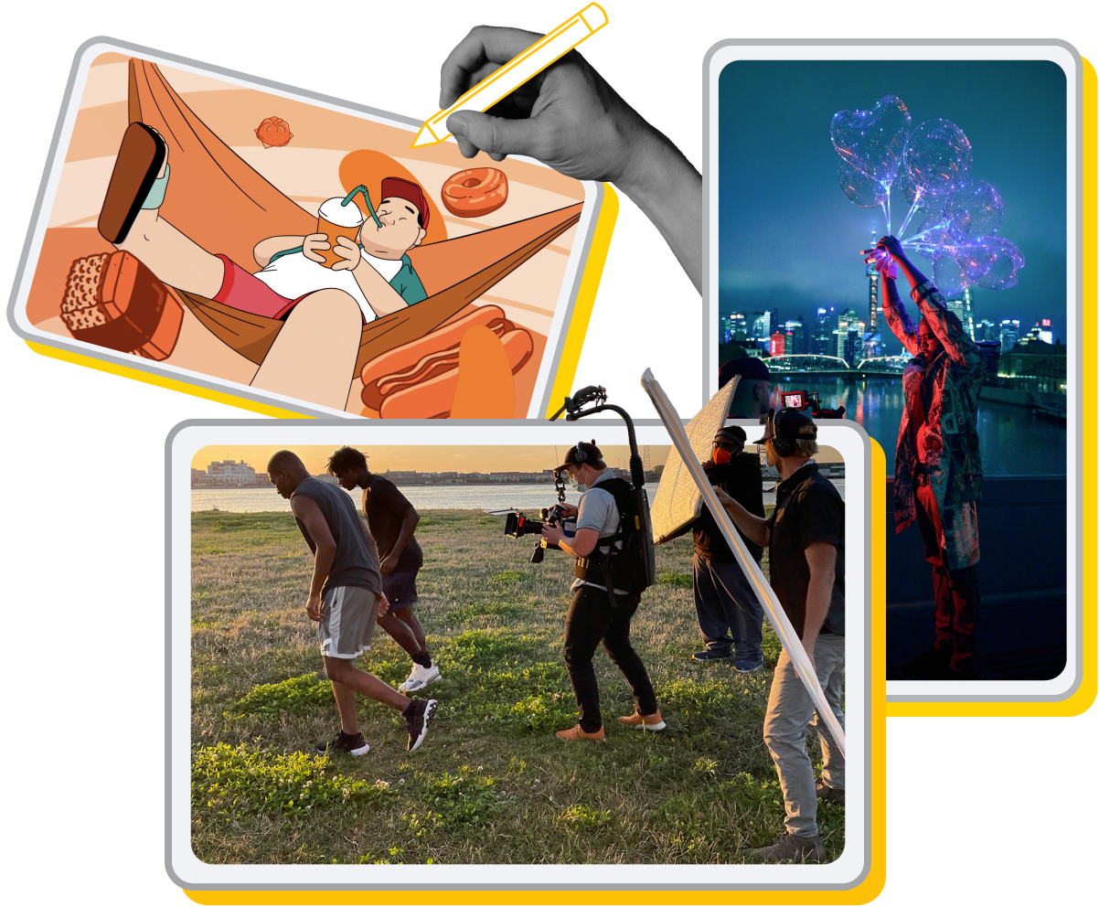 Nossa equipe de especialistas ajuda no refinamento do seu brief, e oferece estratégia criativa e suporte durante todo o processo de criação e produção.